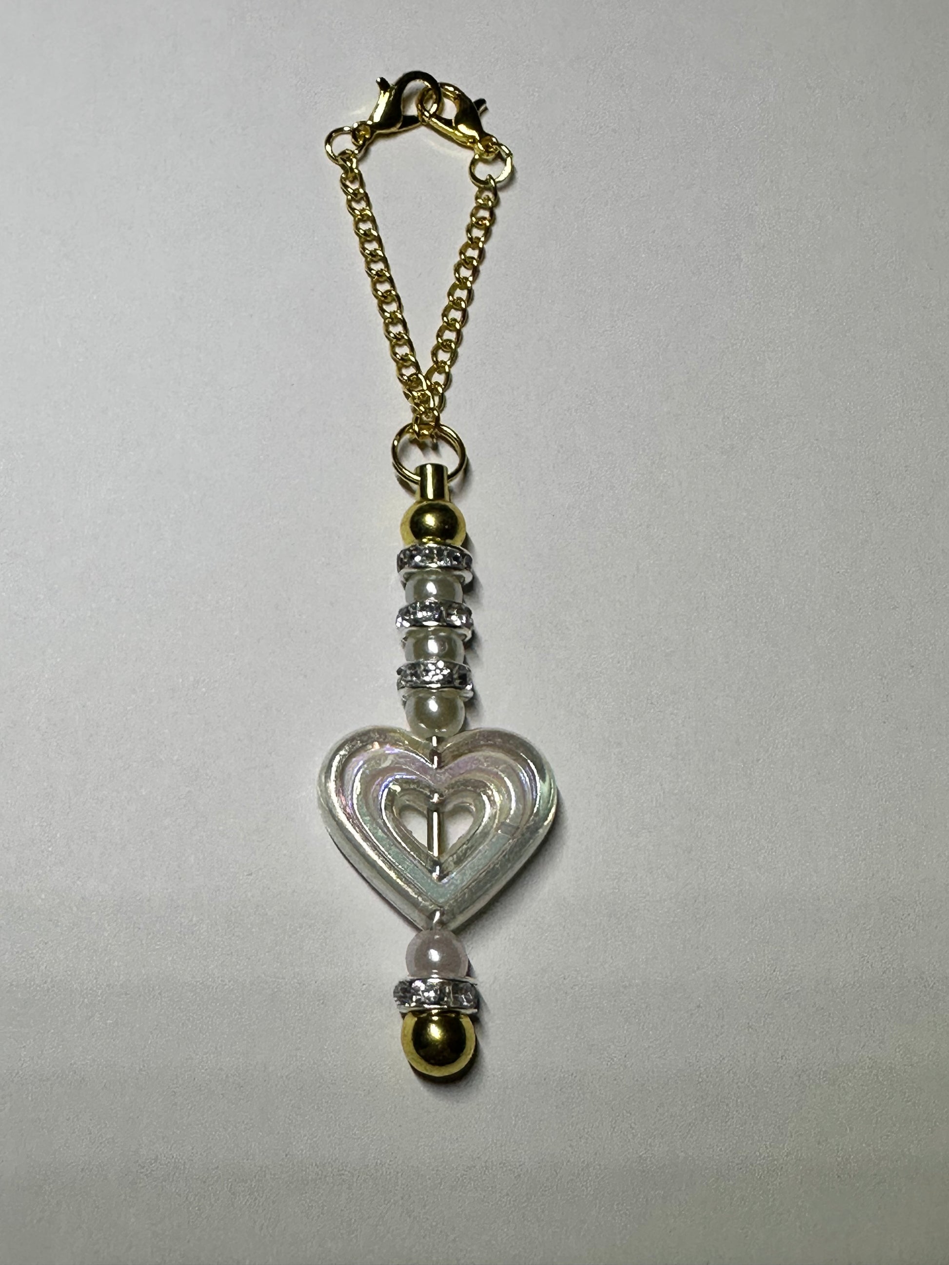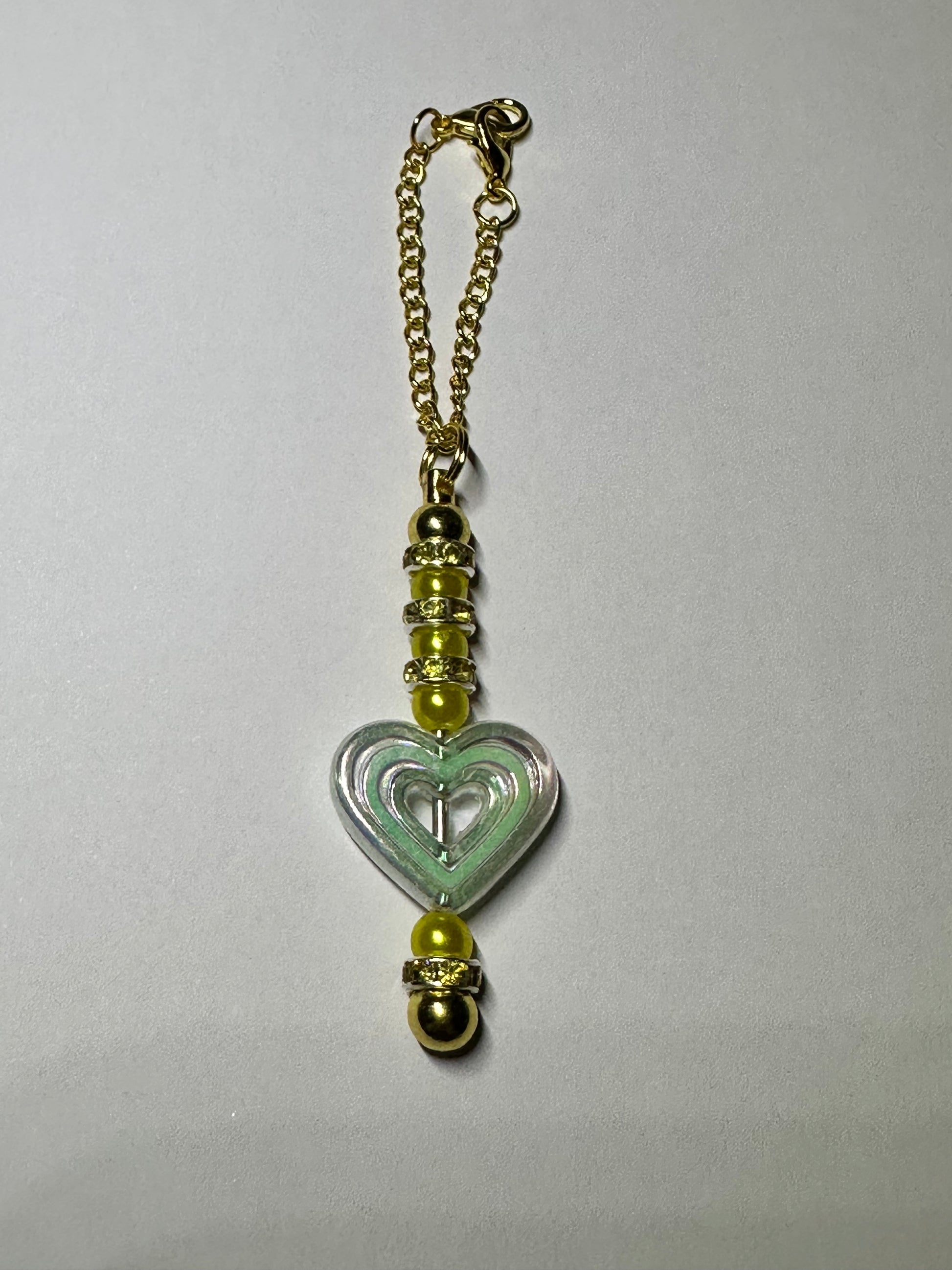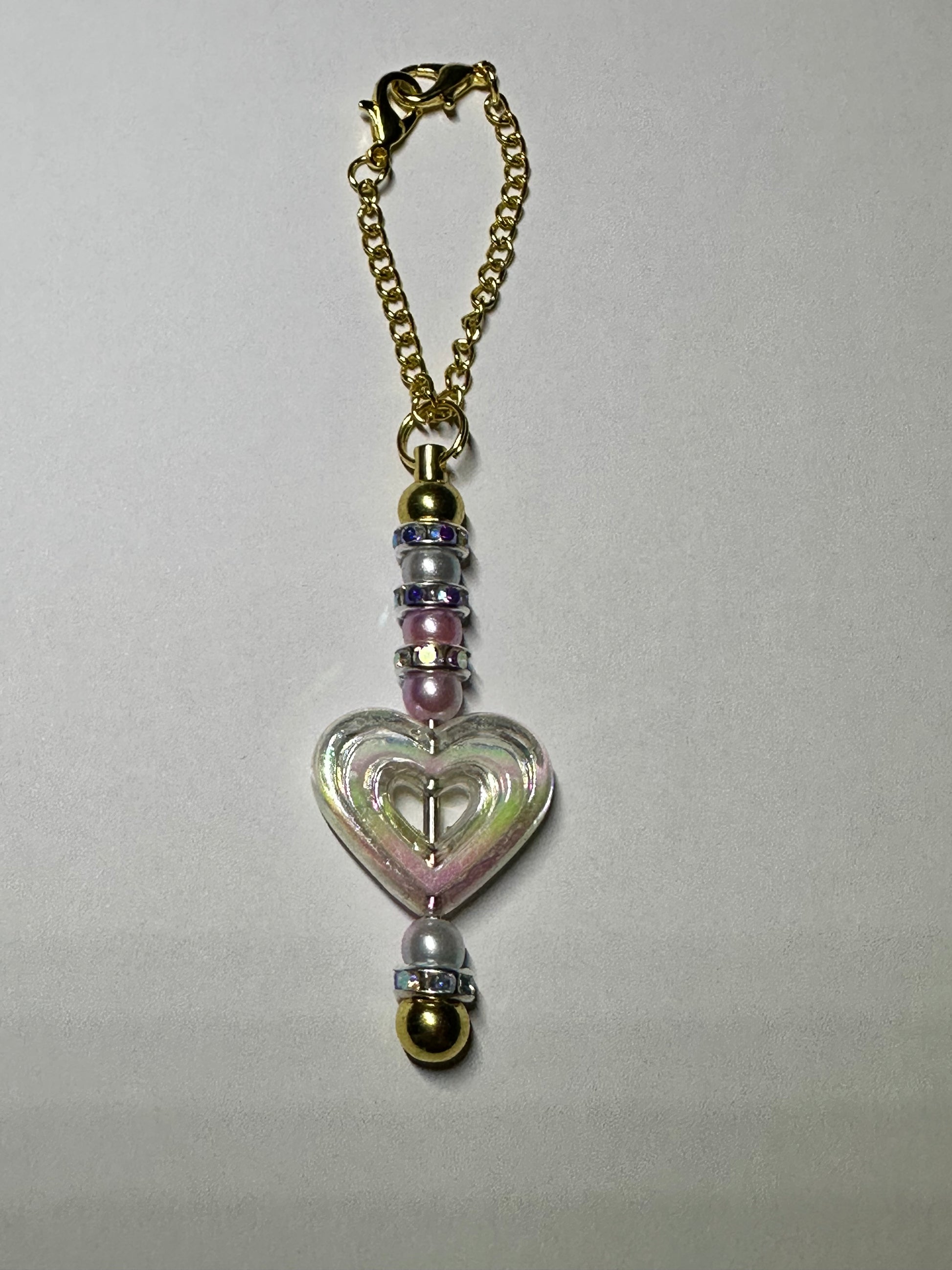 Cup charms with an acrylic heart focal and contrasting beads