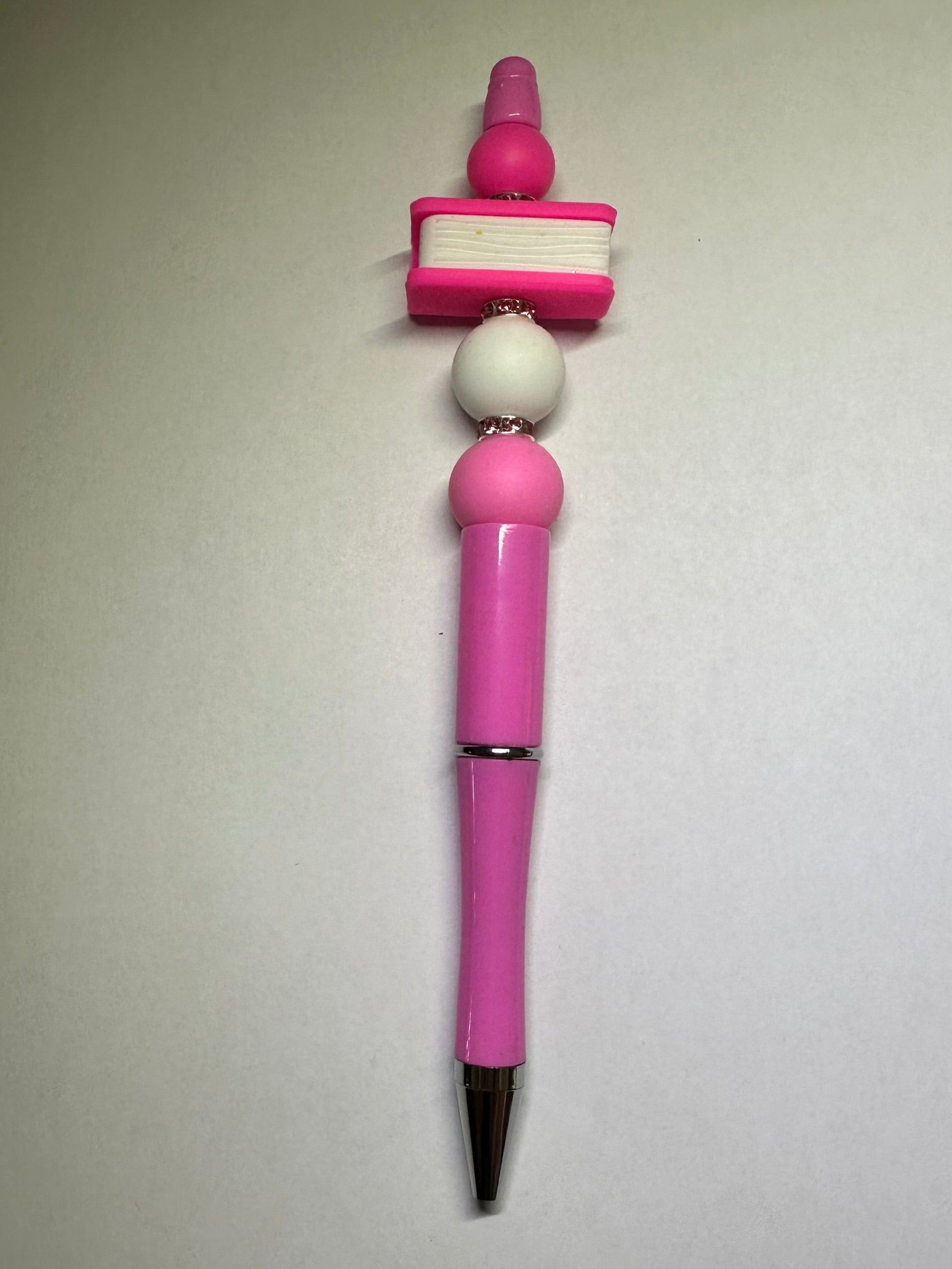 Handmade pen. Hot pink pen with silicone book focal and contrasting beads