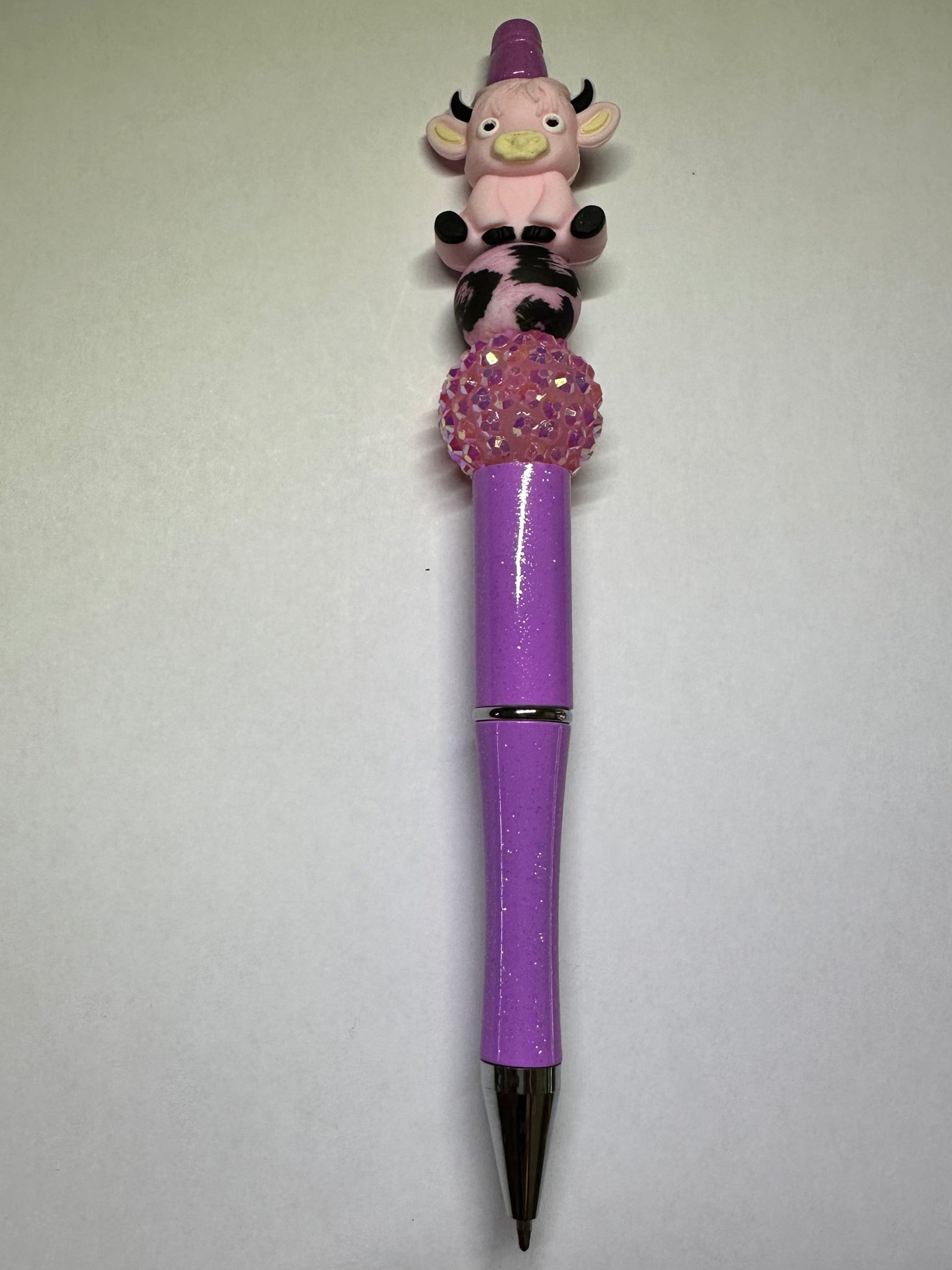 Handmade Highland cow pen. Pretty purple glittery pen with a pink cow and matching beads